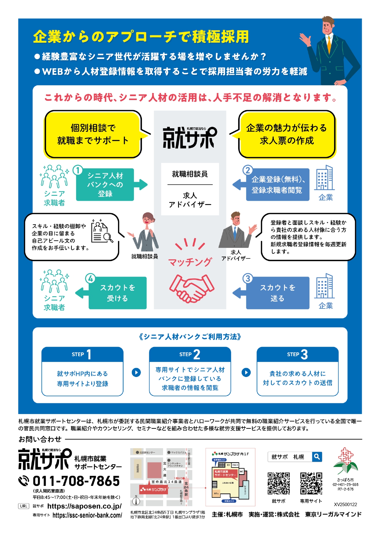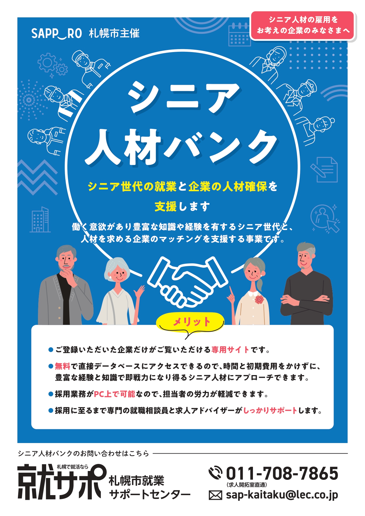 ※ご利用は札幌市就業サポートセンターに求人票の掲載とシニア人材バンク