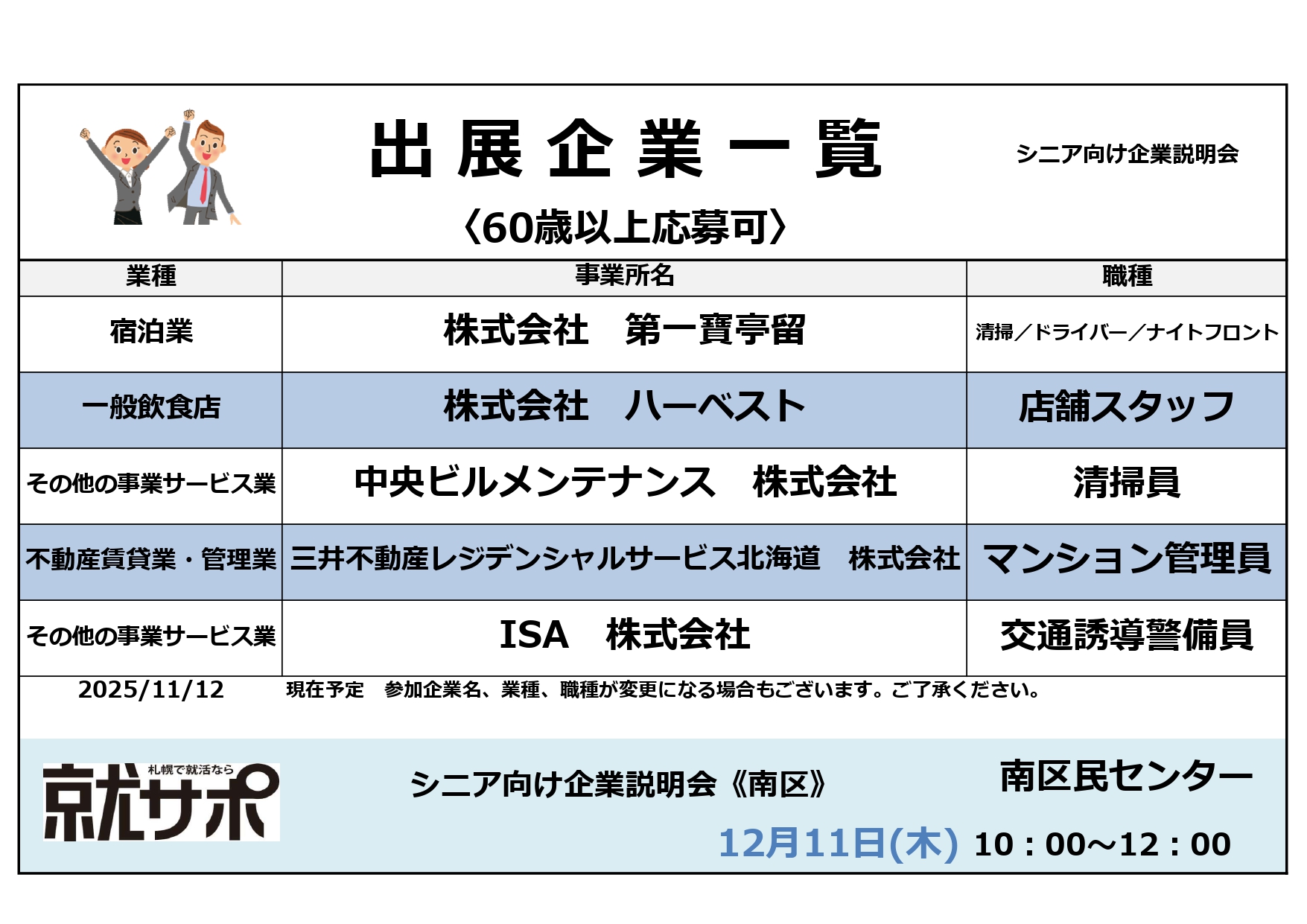 ※参加企業の詳細は開催日の約1ヶ月前にこのページに掲載します。